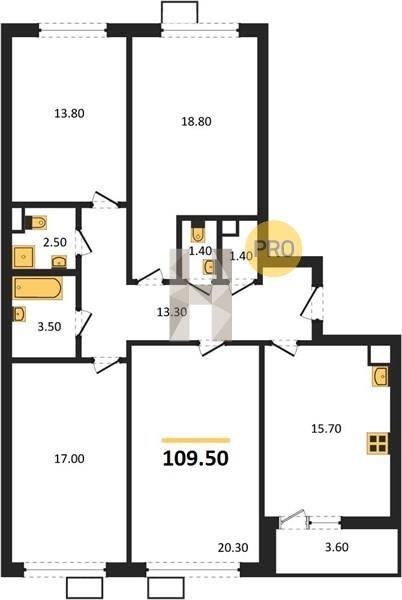 Площадь от 87.5 м2