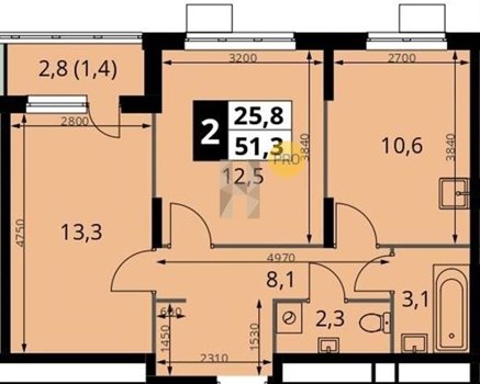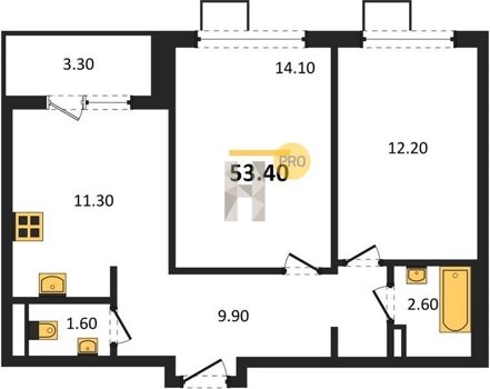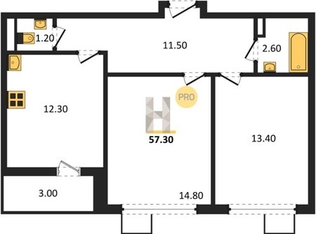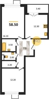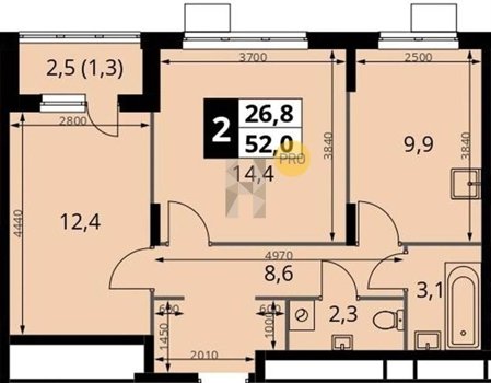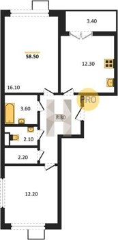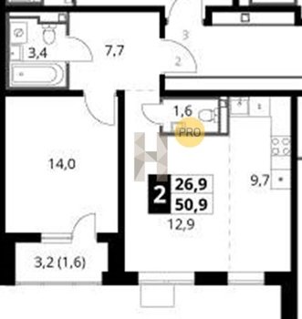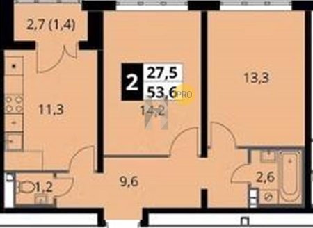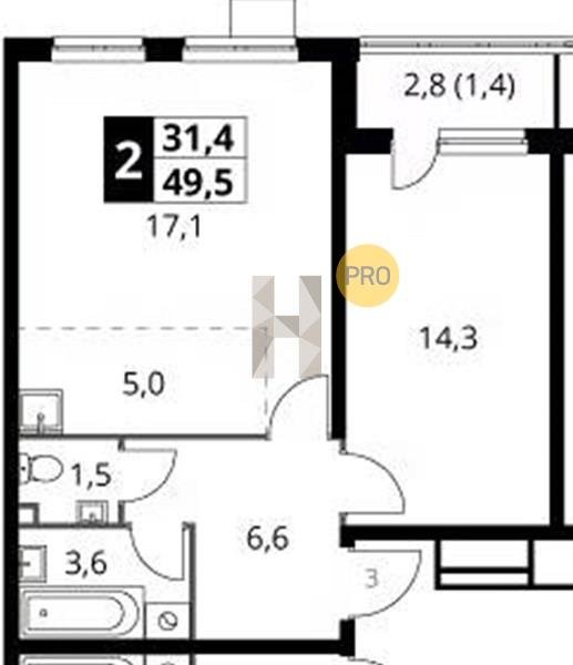 Площадь от 49.3 м2