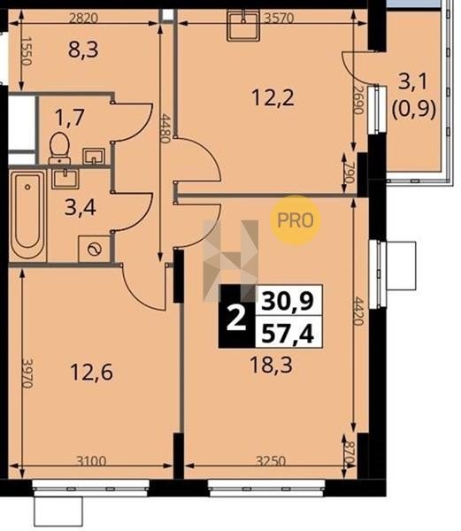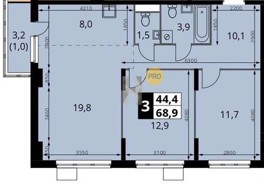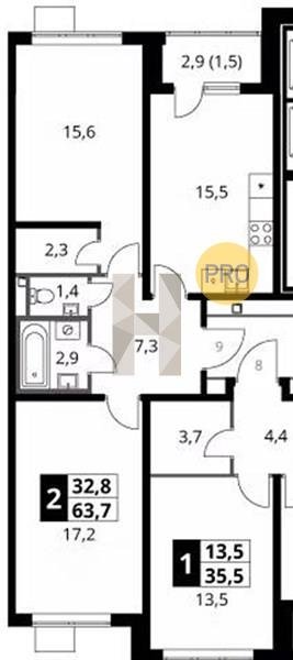 Площадь от 63.1 м2